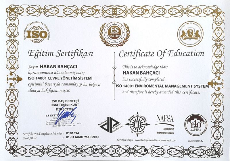 Firmamız, ISO 9001 Kalite Yönetim Sistemi, ISO 14001 Çevre Yönetim Sistemi ve OHSAS 18001 İş Sağlığı ve Güvenliği Yönetim Sistemlerini baz alarak çalışmalar yapmaktadır.
